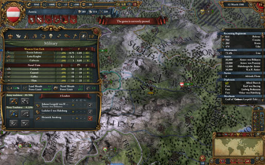 На начало кампании в 1444 году, мы обнаруживаем, что Габсбурги присоединили провинции вблизи герцогства Австрийского, а также обрели некоторые земли далеко от их наследственных территорий. Самая большая стратегическая проблема Австрии состоит в том, что она окружена. Многим из ее могущественных соперников нужно охранять лишь одну основную границу или решать одну локальную проблему одновременно. У Австрии же есть сильная Венеция на юге, вероятный соперник в лице Венгрии на востоке, Богемия и Бавария на севере, что может быть неприятно, если они объединятся.